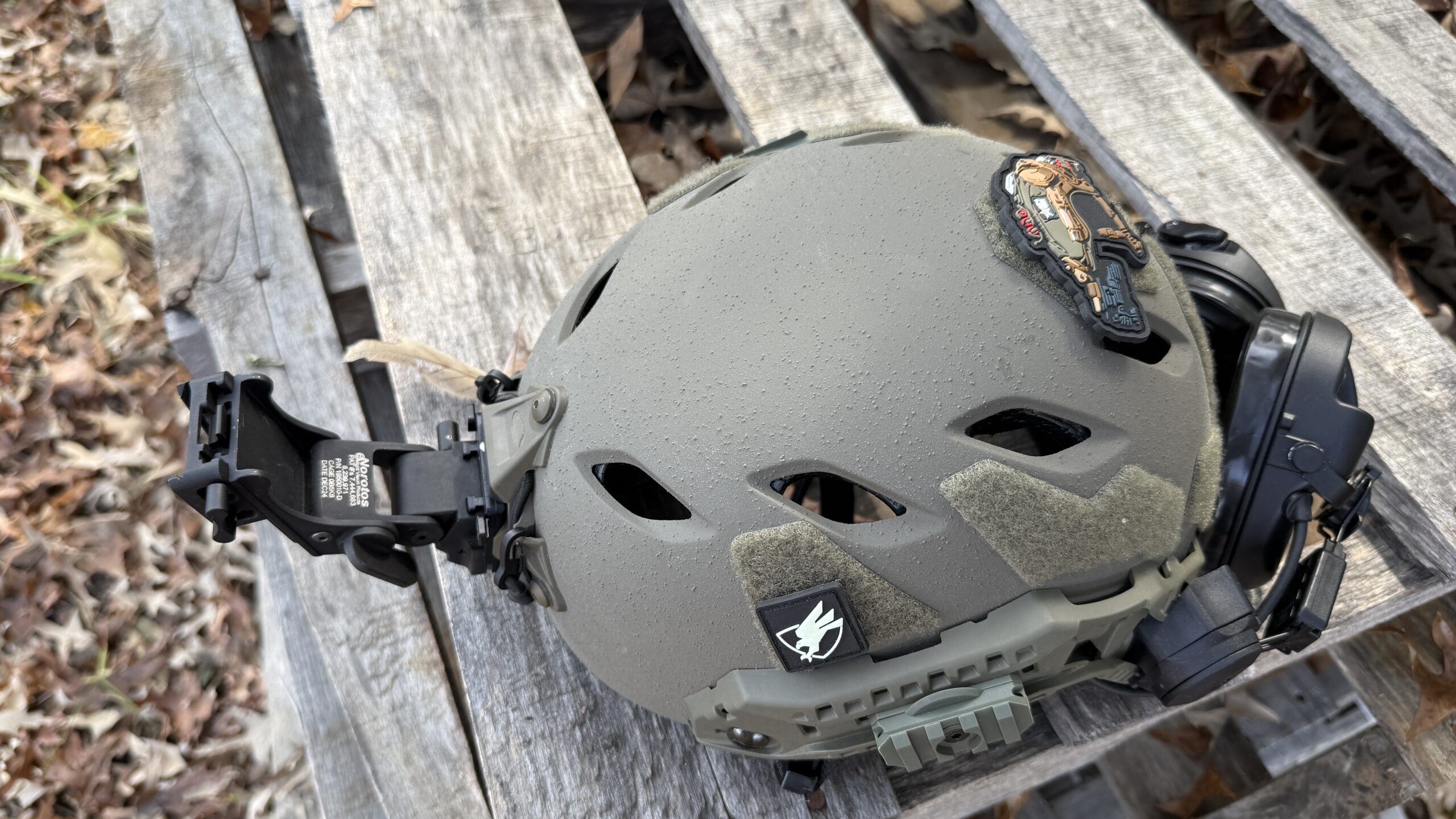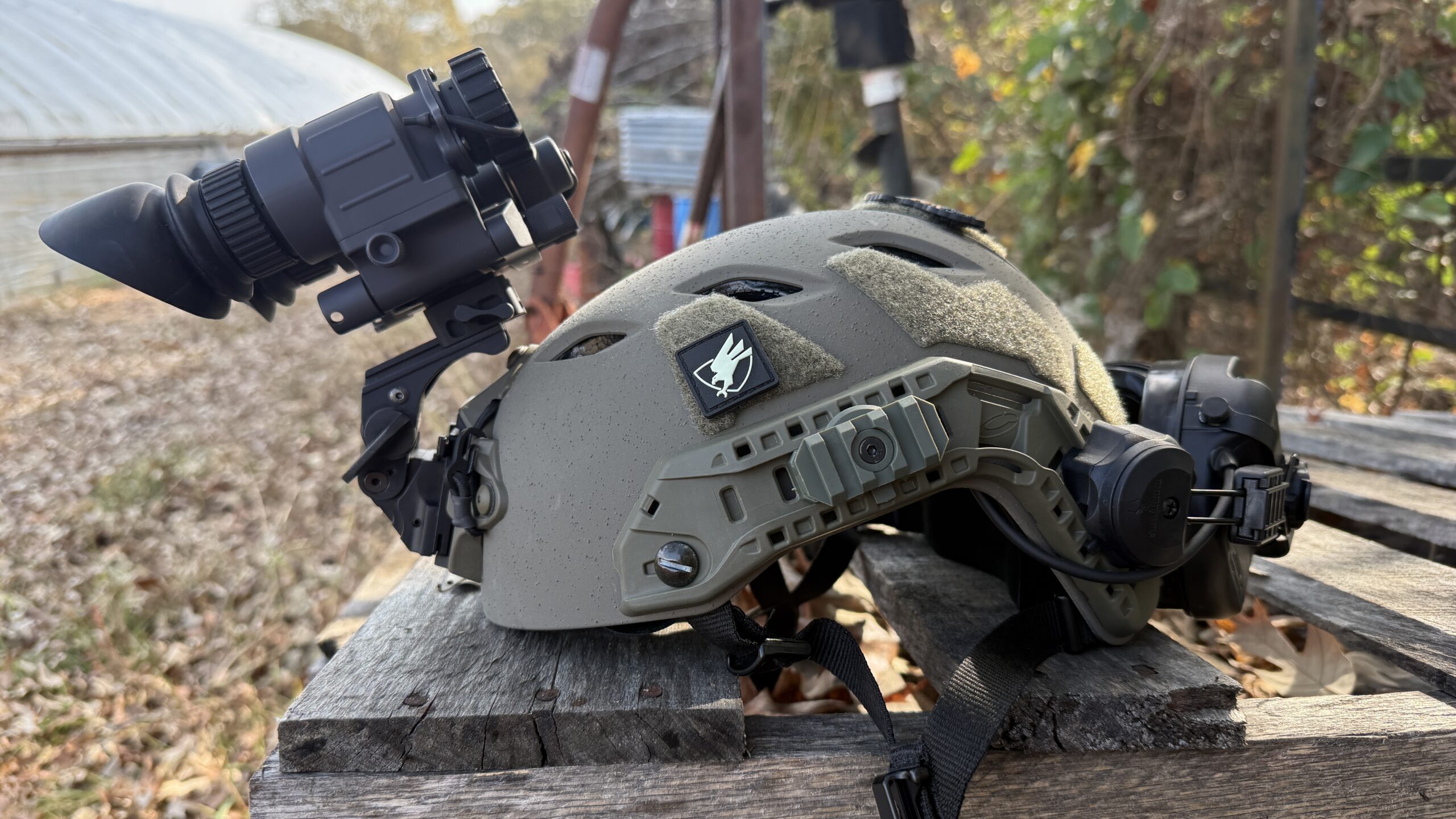 This is not a helmet review, but for context, it helps to understand what I mounted the BNVD-51 on. I am using an Ops Core Fast Bump helmet in Ranger Green with a Norotos Rhino II D-mount. For ear protection, I run the Safariland Liberator HP 2.0 system on Ops Core mounts. I want to keep this part short because the focus of this article is the night vision itself.